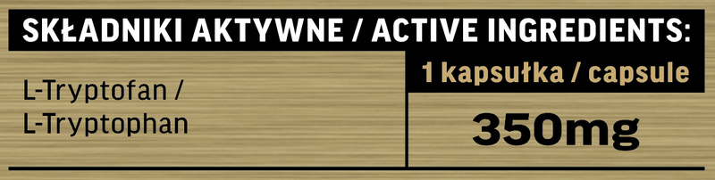 - Odkryj Immune-Labs L-Tryptophan 350mg 120 kapsułek - suplement diety oferujący naturalne wsparcie dla poprawy nastroju i jakości snu w postaci 120 kapsułek. Wykorzystaj korzystny wpływ aminokwasu L-tryptofanu na produkcję serotoniny i melatoniny.